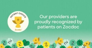 The Zocdoc Patient’s Choice distinction is given to healthcare providers who consistently receive strong ratings and positive feedback from patients. It reflects the things people care about most when choosing a provider, like communication, comfort, trust, appointment availability, and the overall experience.